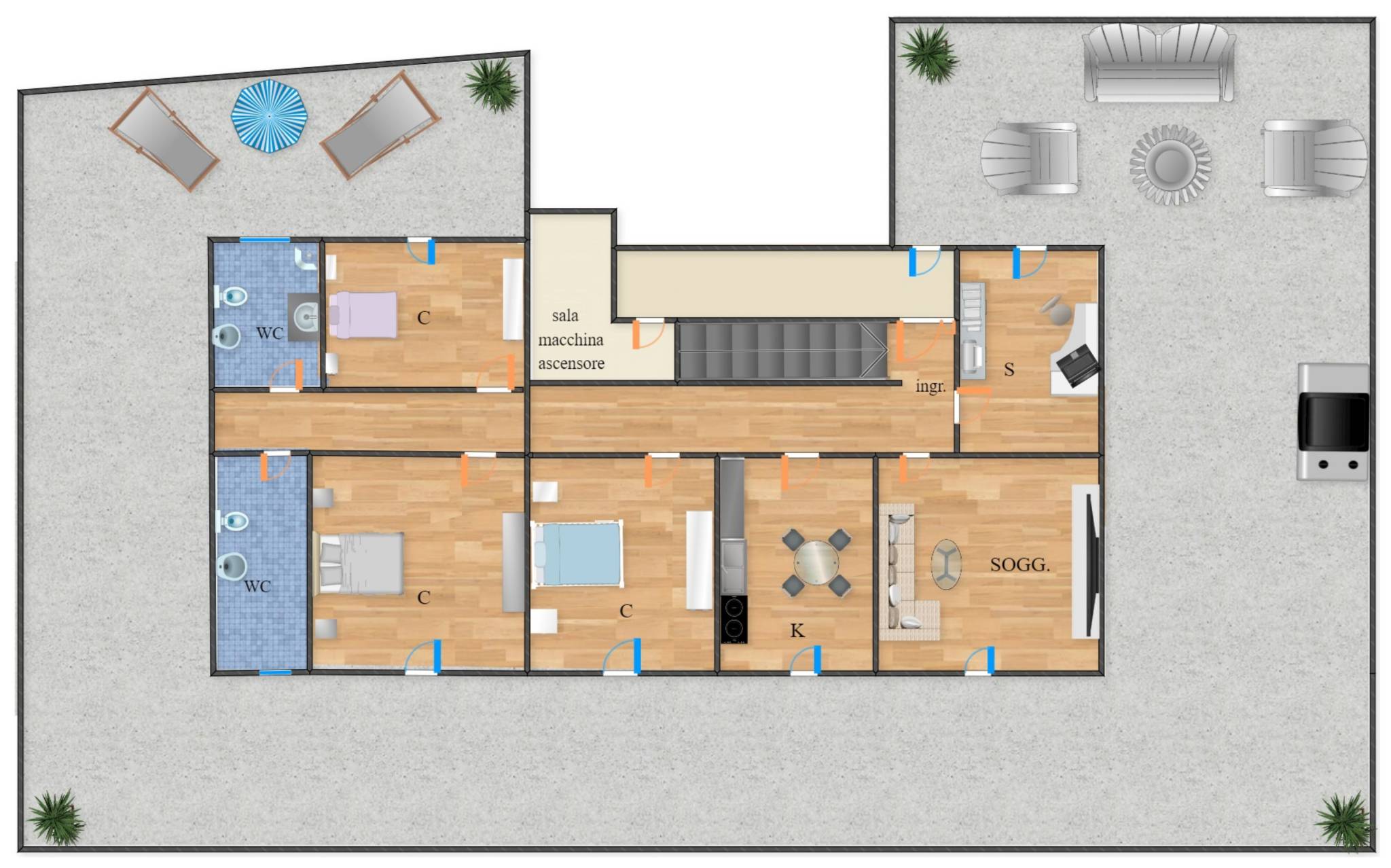 | Terrazza - 6° piano | 180 Mq | 54 Mqc |
