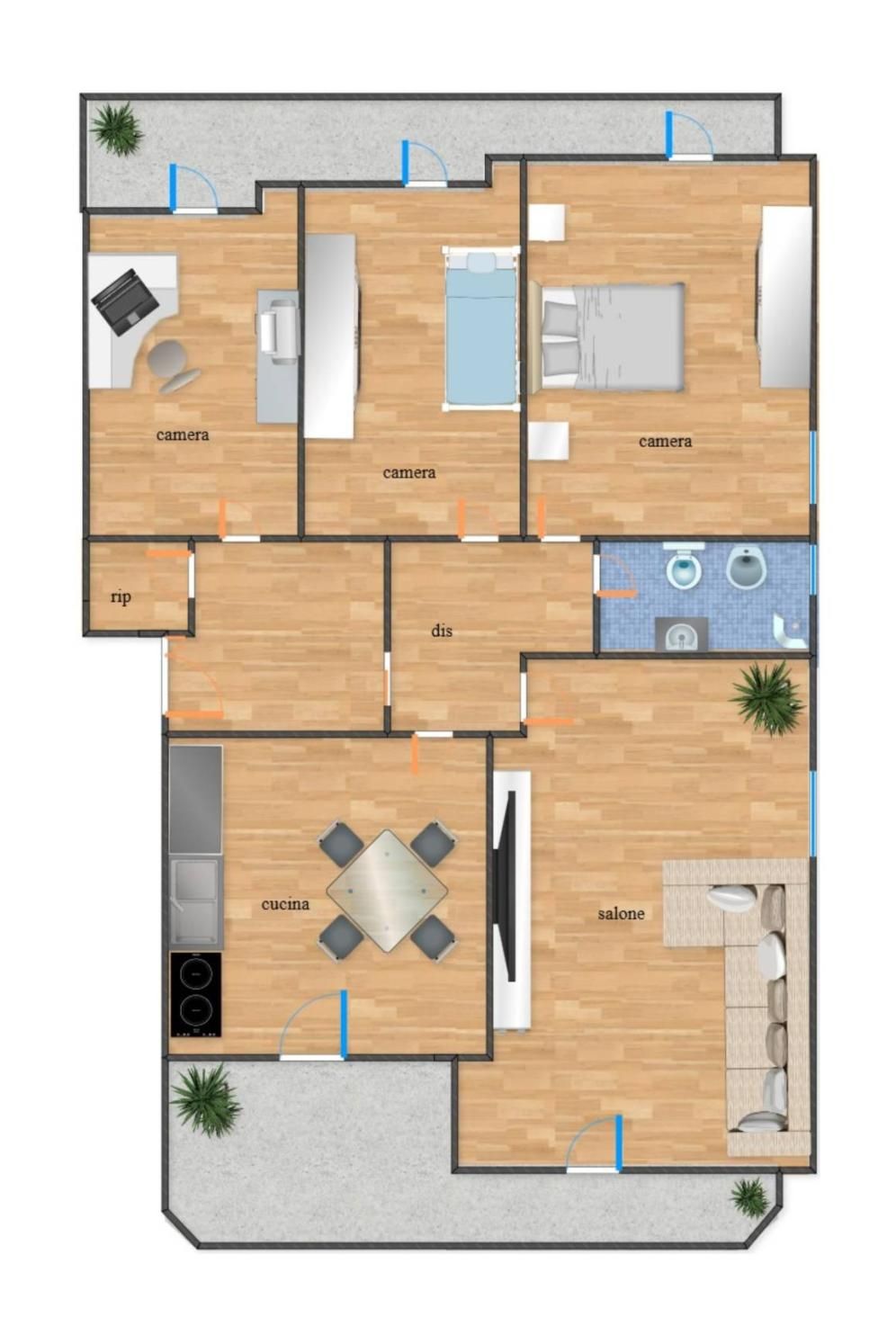 L'appartamento è libero su tre lati, permettendo una privacy e un'esposizione ottimali. Ideale per coloro che cercano la tranquillità di una villetta con la praticità di un appartamento.