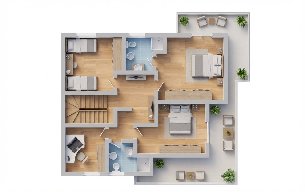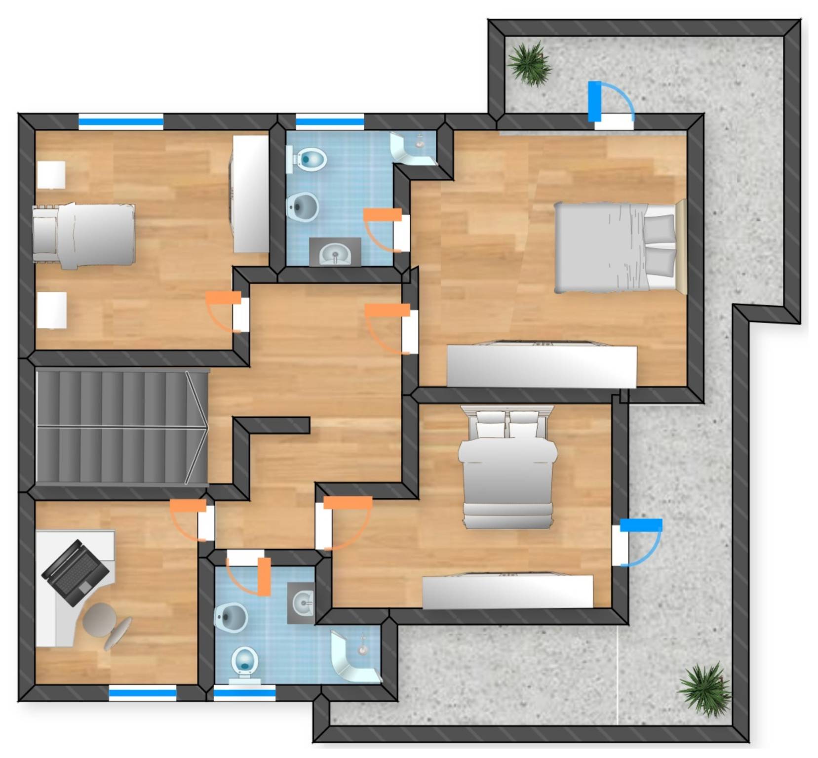 Al livello giorno, abbiamo un salone doppio accogliente, una cucina abitabile, impreziosita da un camino che diventa il cuore della casa.. Sullo stesso piano si apprezzano oltre alla cucina e al salone, uno studio molto grande ed un bagno. La zona notte invece, con quattro camere da letto ariose e 2 bagni, assicura funzionalità e autonomia a ogni membro della famiglia.